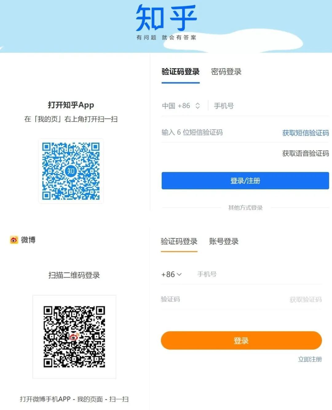 例如:当用户实在忍受不了登录弹窗,想要登录账号的时候,这些互联网厂商都会默认用户使用App扫码或是短信验证码登录。