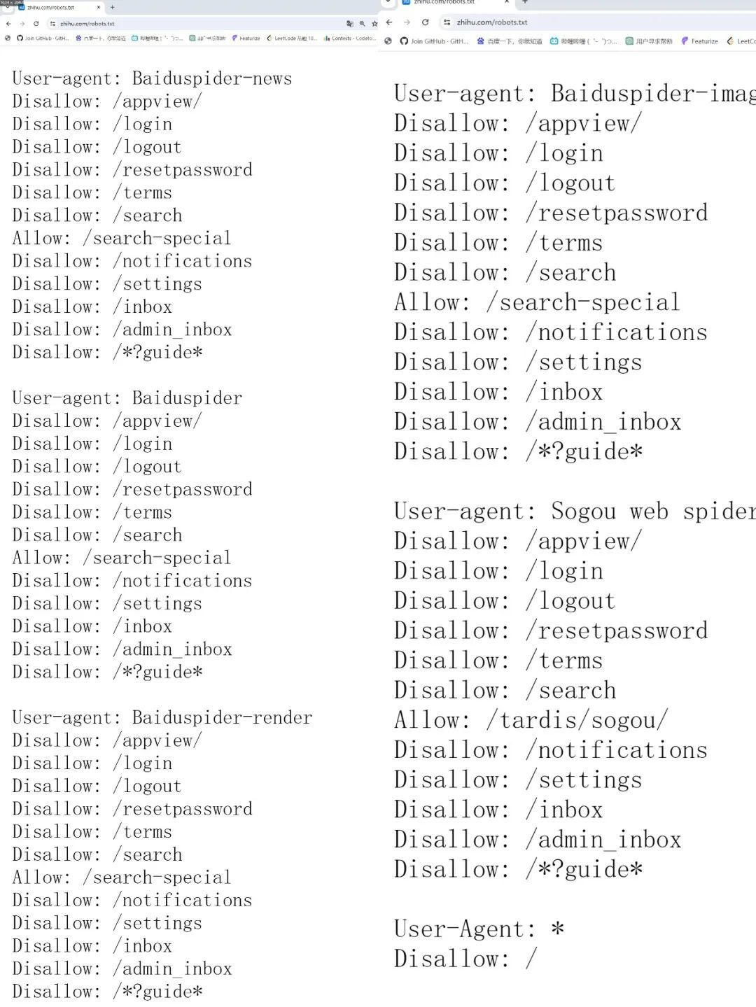 同时有网友发现,在最近的一次更新中,知乎取消了谷歌和必应的爬虫权限。