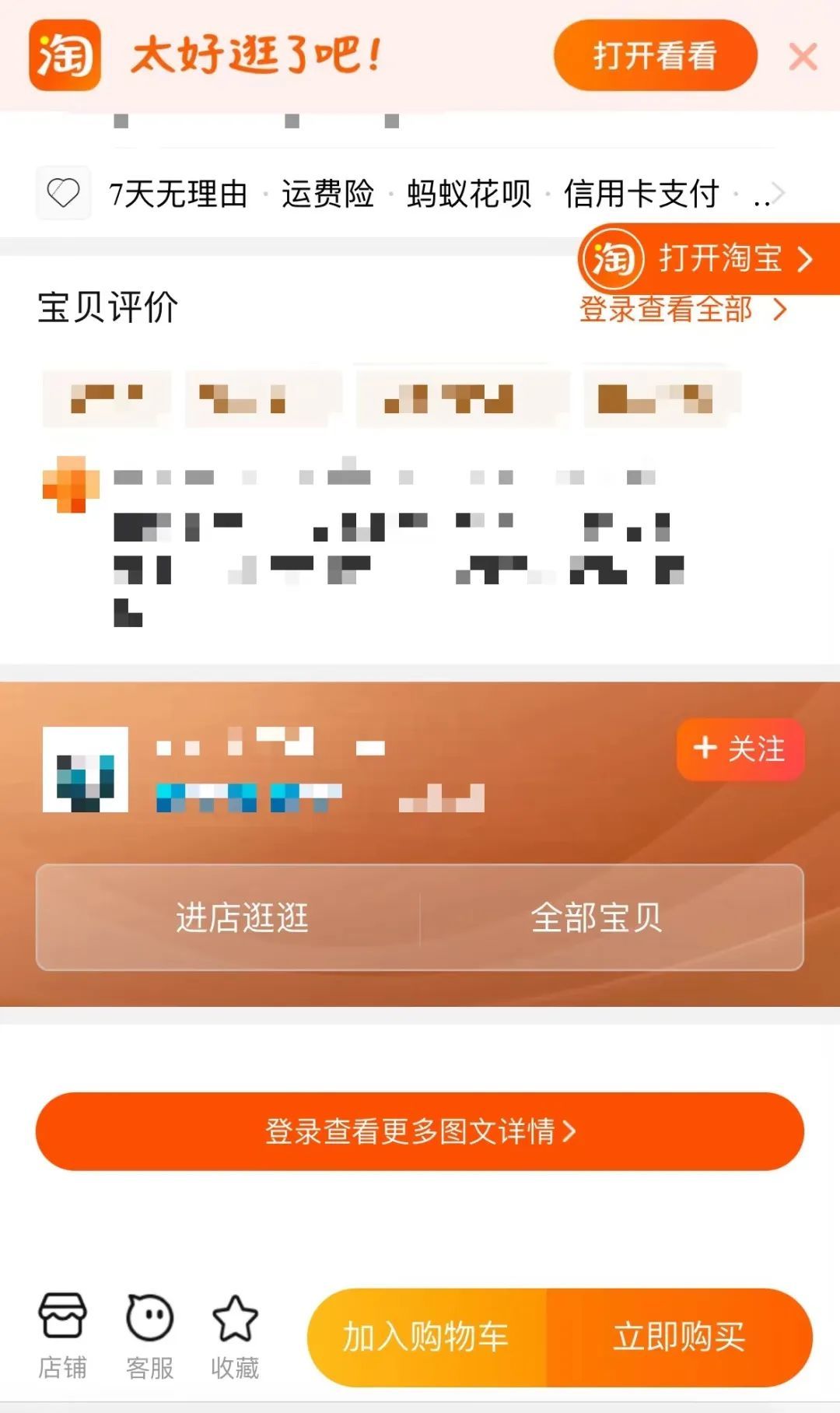 至于淘宝手机网页端嘛,不登录不让看商品详情,还有无处不在的打开App提示。