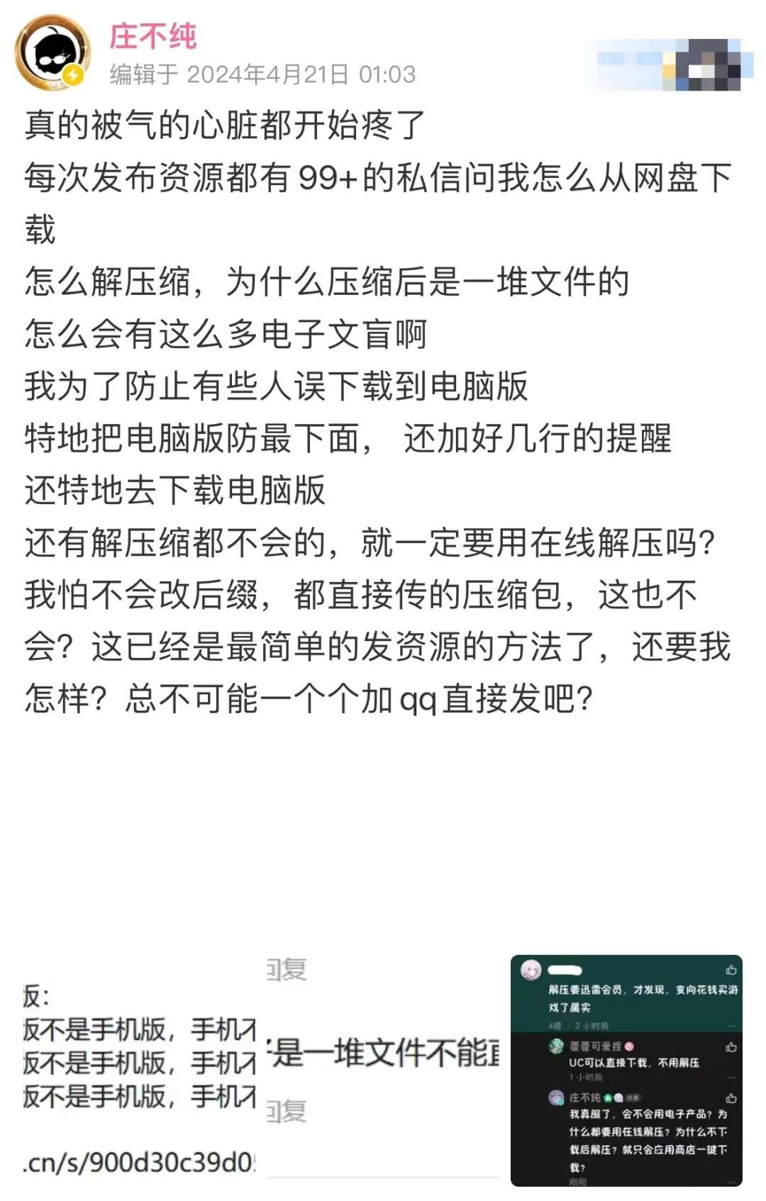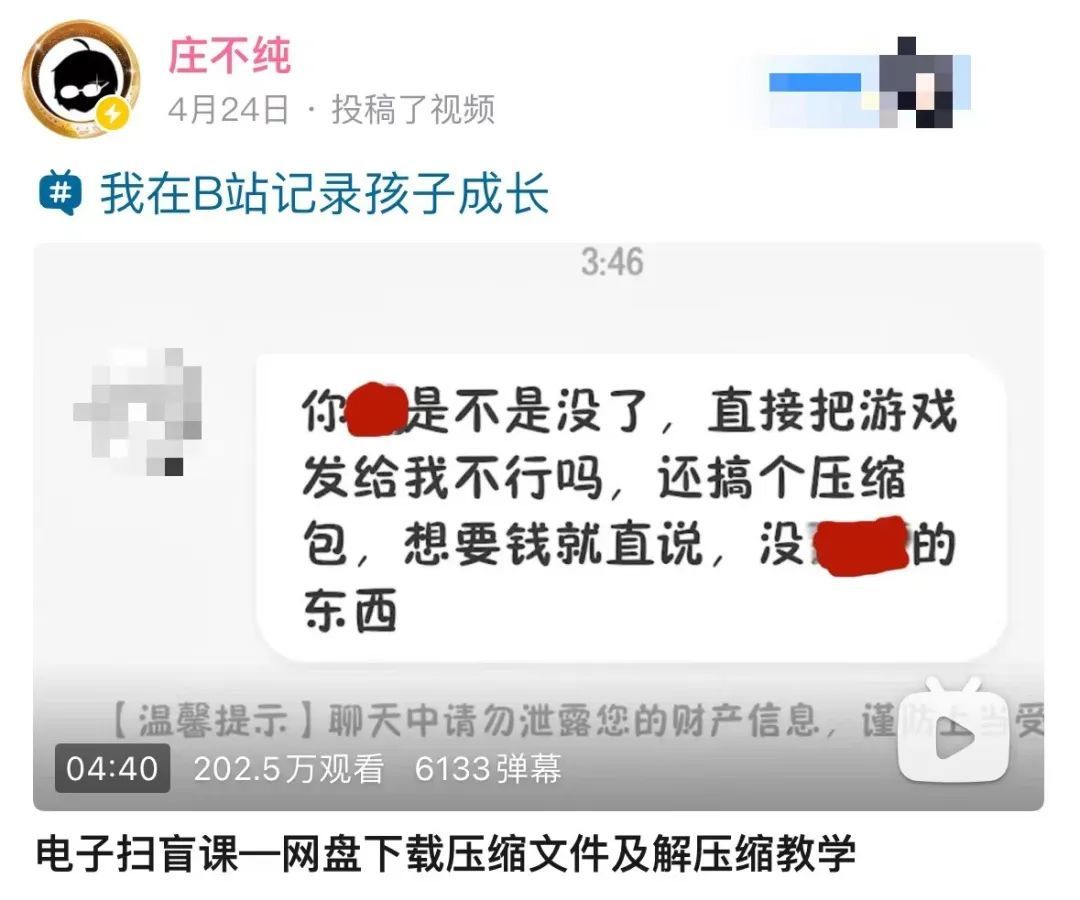 此前网络上,就有一位游戏博主,在网络上发布了自己游戏的“压缩包”后,被一位不会解压的“小学生”破口大骂的事情。