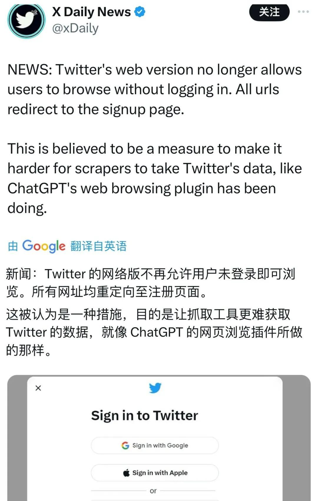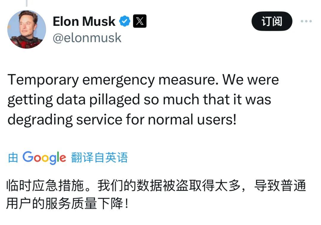 去年在X还叫推特的时候,马斯克就曾限制过游客可以观看信息的数量。