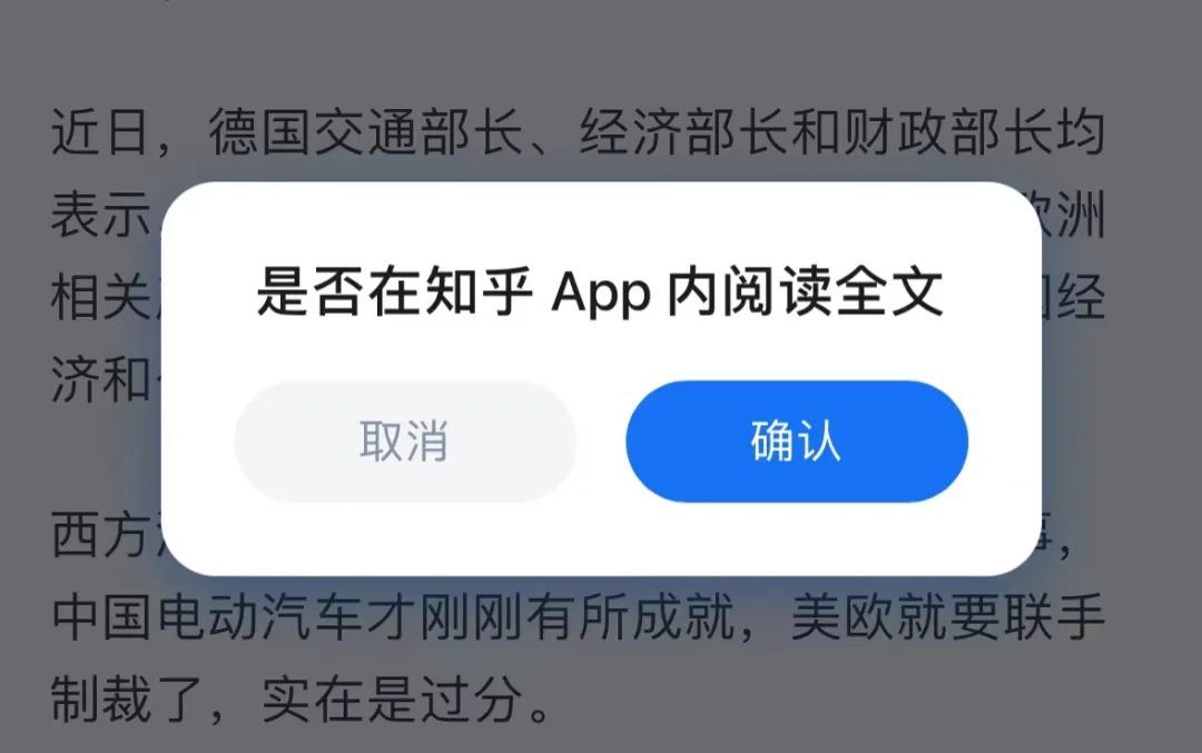 重新打开知乎网页版后,虽然没有强制登录,但在浏览文章的时候会不断弹窗提醒我“是否在知乎App内阅读全文”。